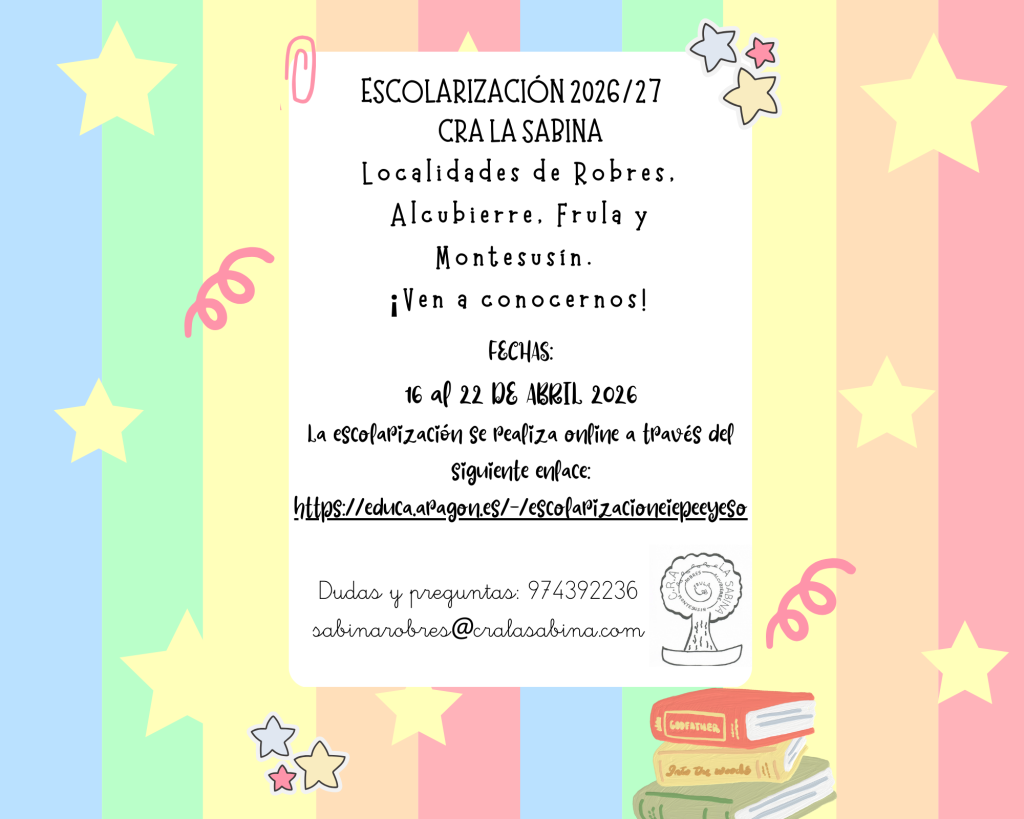 Sin categoría ESCOLARIZACIÓN CURSO 2026/2027 Publicado por hollywillis en 25 de marzo de 2026 Leer la siguiente → Sin categoría Elecciones a Consejo Escolar Sin categoría Huerto escolar en Alcubierre hollywillis Leer la siguiente → Sin categoría Elecciones a Consejo Escolar Sin categoría Huerto escolar en Alcubierre